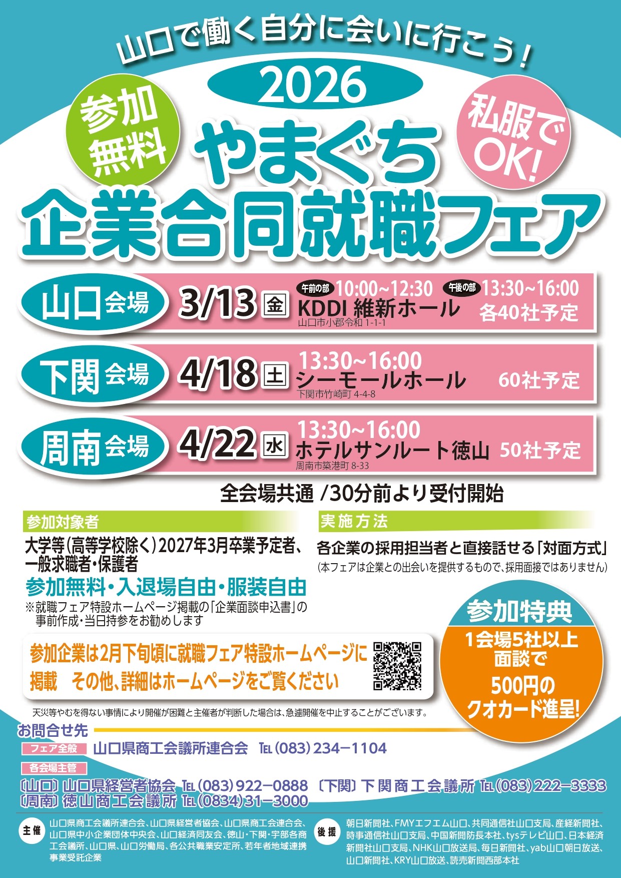 山口会場は5社以上、下関・周南会場は4社以上面談された方にクオカード500円分進呈